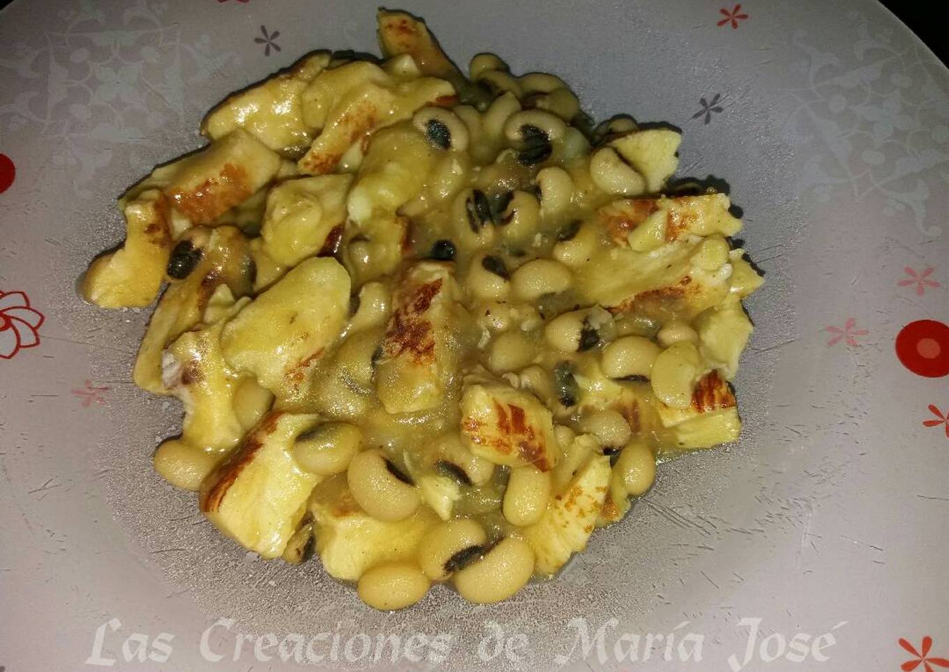 - Echamos los frijoles en una sartén, troceamos la pechuga y echamos la salsa de curry. Calentamos unos 10 min. Listo